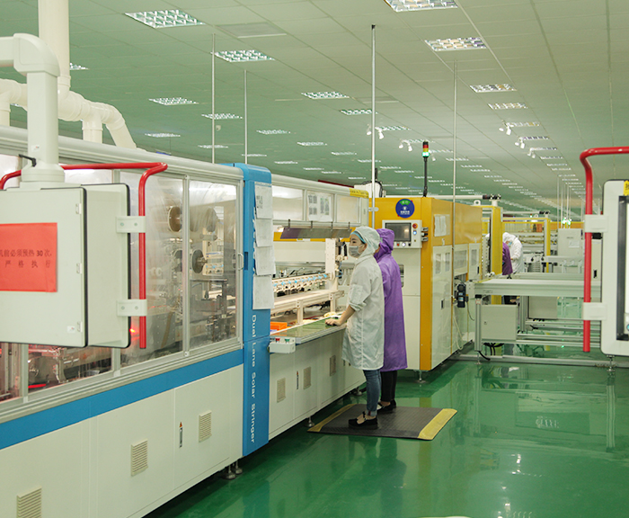 徐州嘉寓光能科技有限公司是北京嘉寓門(mén)窗幕墻股份有限公司(股票代碼:300117)的全資子公司,擁有行業(yè)內(nèi)領(lǐng)先水平的高度自動(dòng)化光伏組件生產(chǎn)基地,年產(chǎn)能2GW。目前,徐州嘉寓光能具備單多晶、貼膜、半片、雙玻、9BB、拼片、超輕薄組件以及大尺寸組件的生產(chǎn)技術(shù),產(chǎn)品輸出功率可涵蓋270W至650W等各不同級(jí)別。公司組件生產(chǎn)車間擁有著行業(yè)內(nèi)先進(jìn)的自動(dòng)化生產(chǎn)線,其獨(dú)特的在線自動(dòng)檢測(cè)功能, 可有效避免人為因素所造成的產(chǎn)品不良,進(jìn)一步確保產(chǎn)品的良好品質(zhì)與一致性。同時(shí), 公司擁有健全的質(zhì)量保證體系及高素質(zhì)的員工團(tuán)隊(duì),建有嚴(yán)格的企業(yè)內(nèi)控質(zhì)量標(biāo)準(zhǔn)。